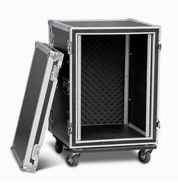 防震機(jī)柜采用標(biāo)準(zhǔn)多層膠合板外貼防火板,黑色防火板貼面,原木夾板;內(nèi)嵌手把、蝴蝶鎖、球形包角、萬向輪;上蓋波浪海綿;下蓋內(nèi)部貼厚度不一的eva防震海綿